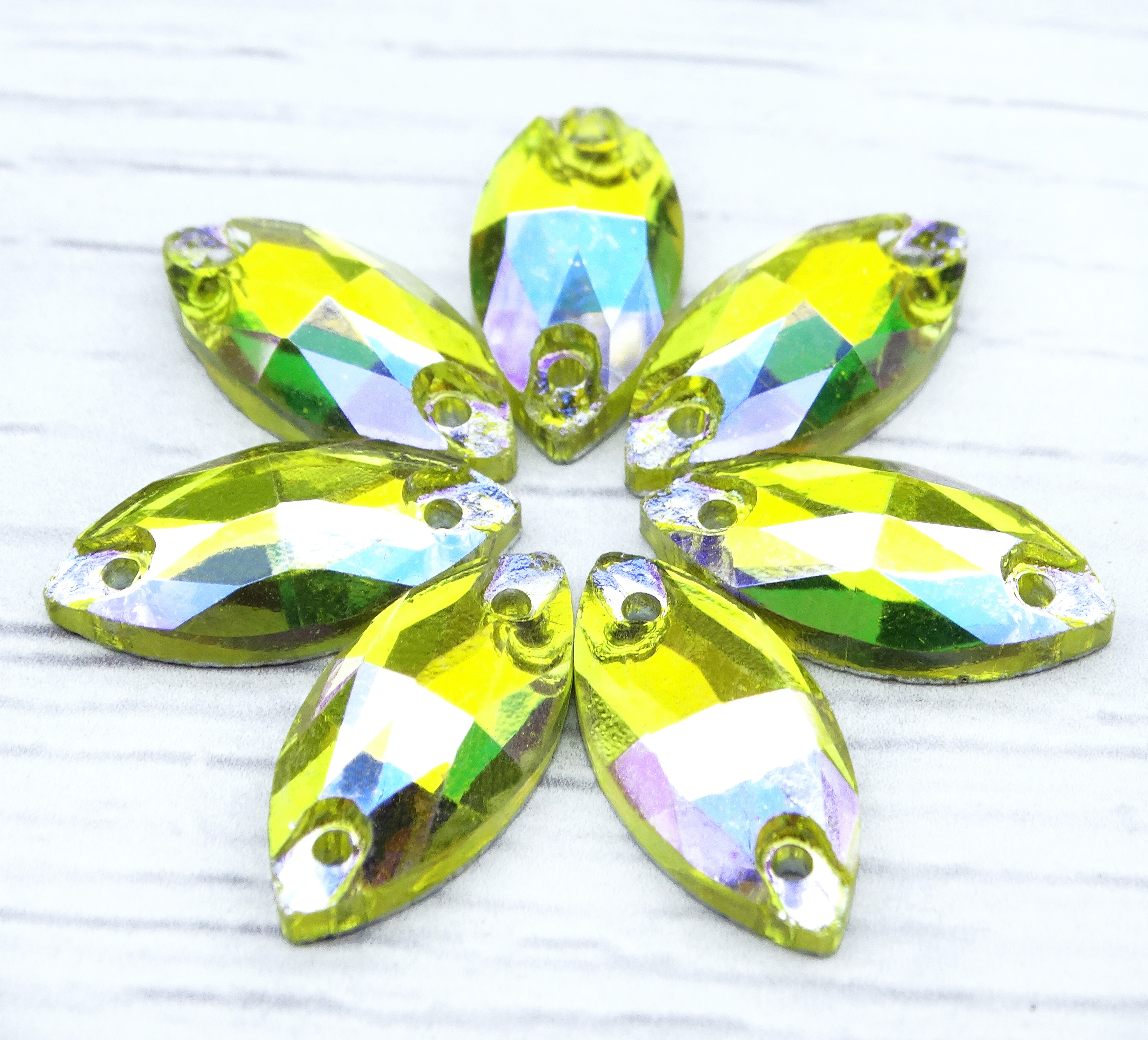 МИ007ДС612 Хрустальные стразы круглые пришивные "лодочка", цвет: цитрин AB, размер: 6х12 мм, 15 шт.