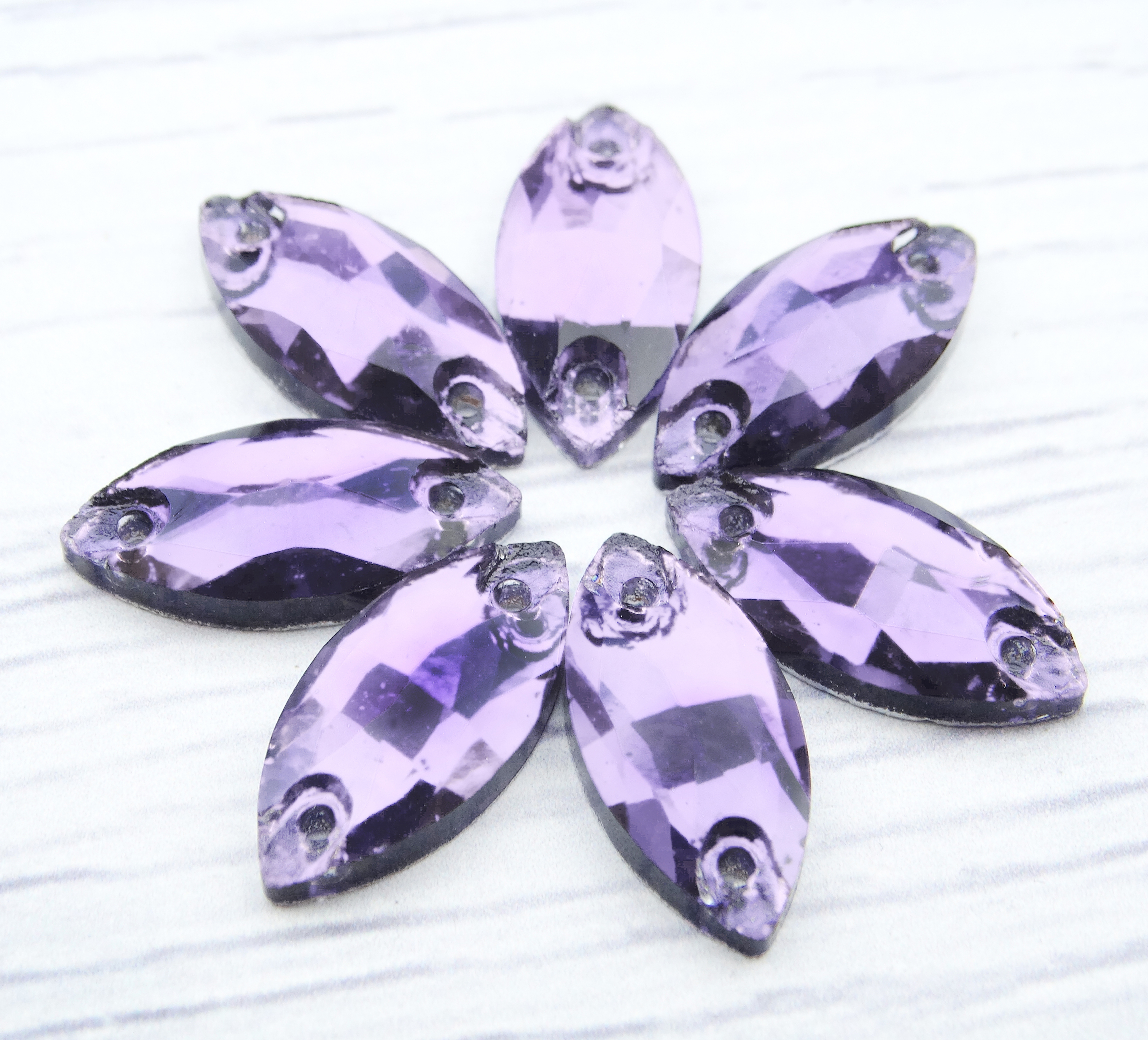 МИ018НН612 Хрустальные стразы пришивные "лодочка", цвет: сиреневый, размер: 6х12 мм, 15 шт.