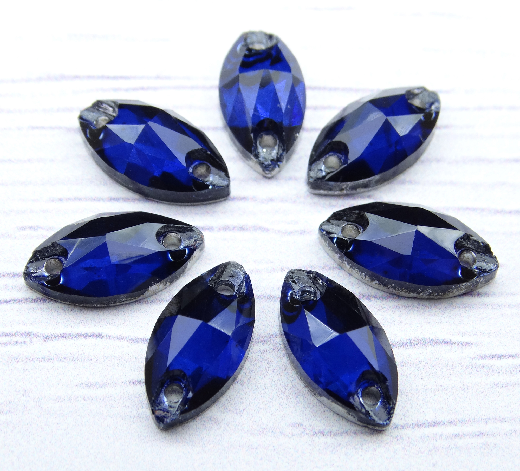 МИ021НН612 Хрустальные стразы пришивные "лодочка", цвет: полуночный синий, размер: 6х12 мм, 15 шт.