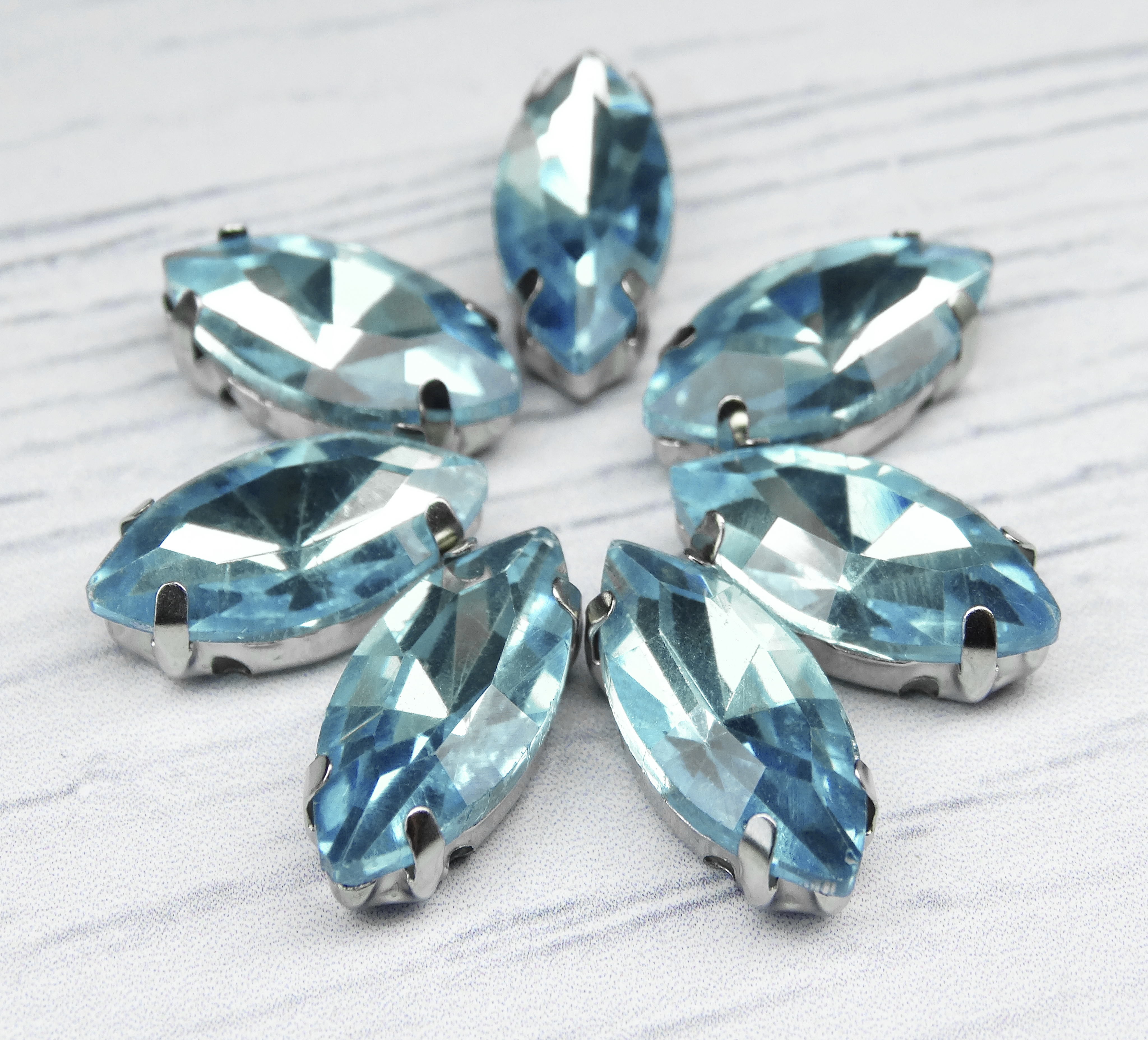 МЦ036НН715 Хрустальные стразы формы "лодочка" в цапах, светло-голубой, 7х15 мм, 5 шт.