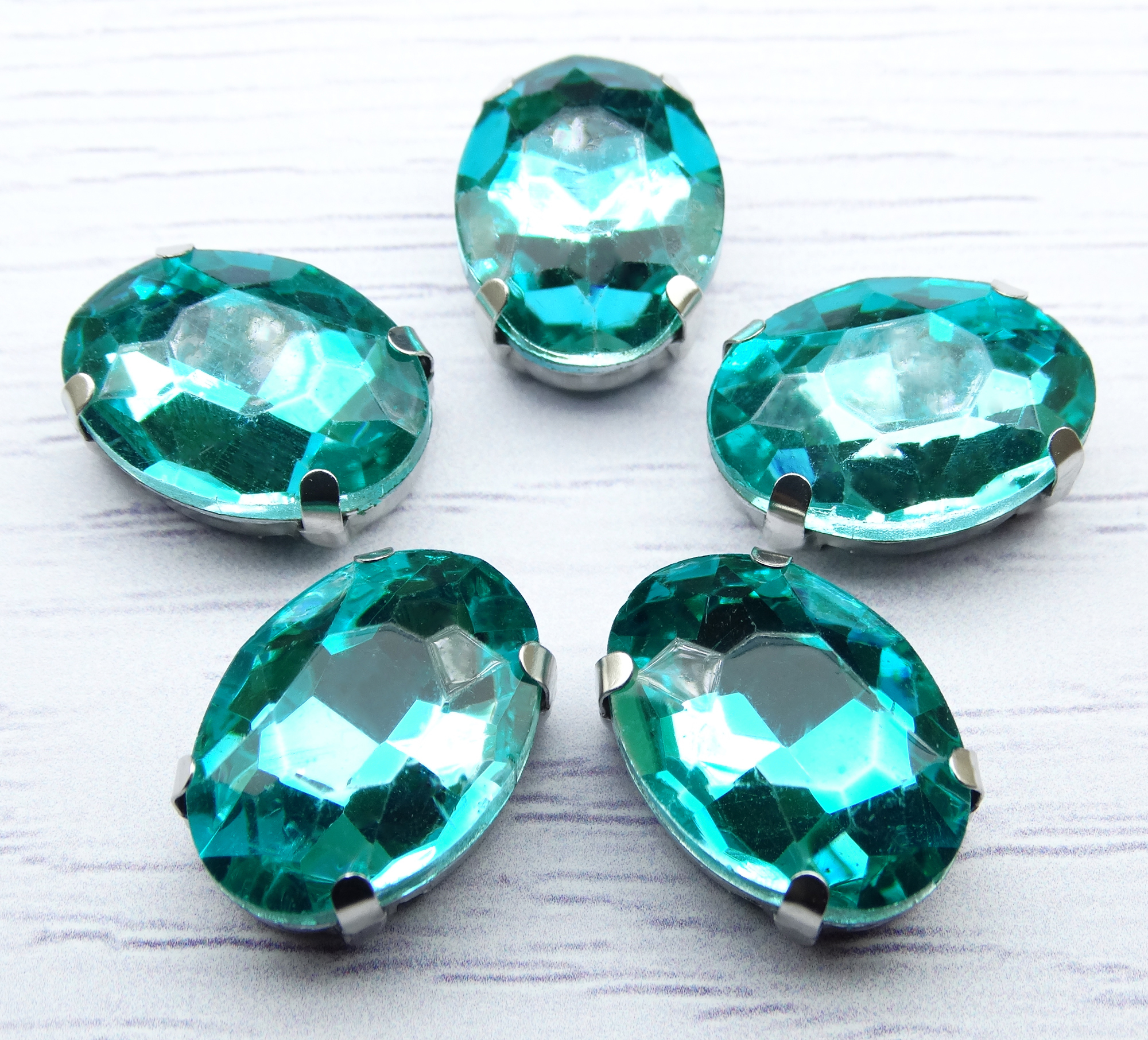 ОЦ035НН1318 Хрустальные стразы формы "овал" в цапах, цвет: бирюзовый, размер: 13х18 мм, 3 шт.