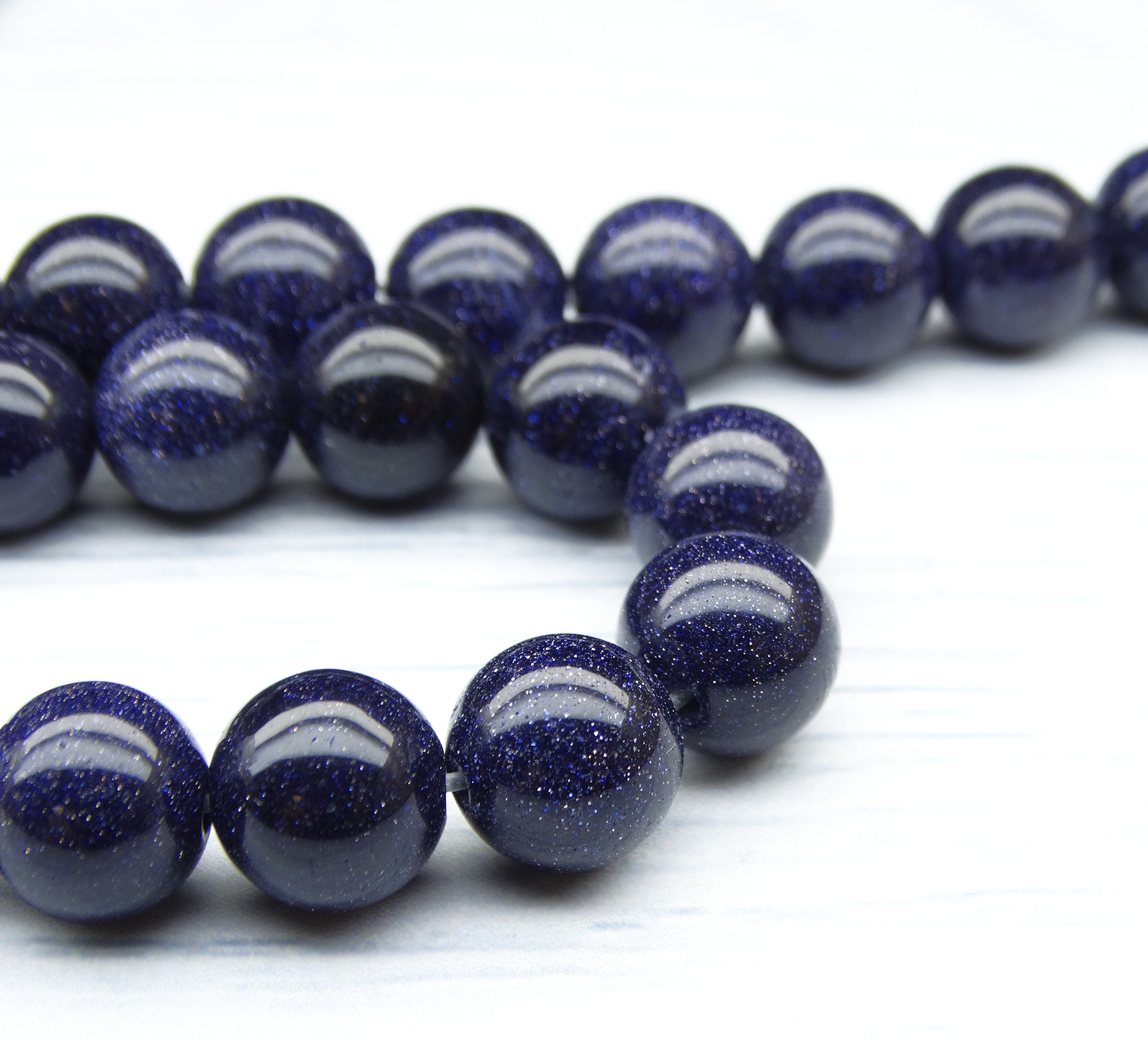 ПК040НН10-1 Бусины из природного камня "золотой песок" синий, размер: 10 мм, 3 шт.