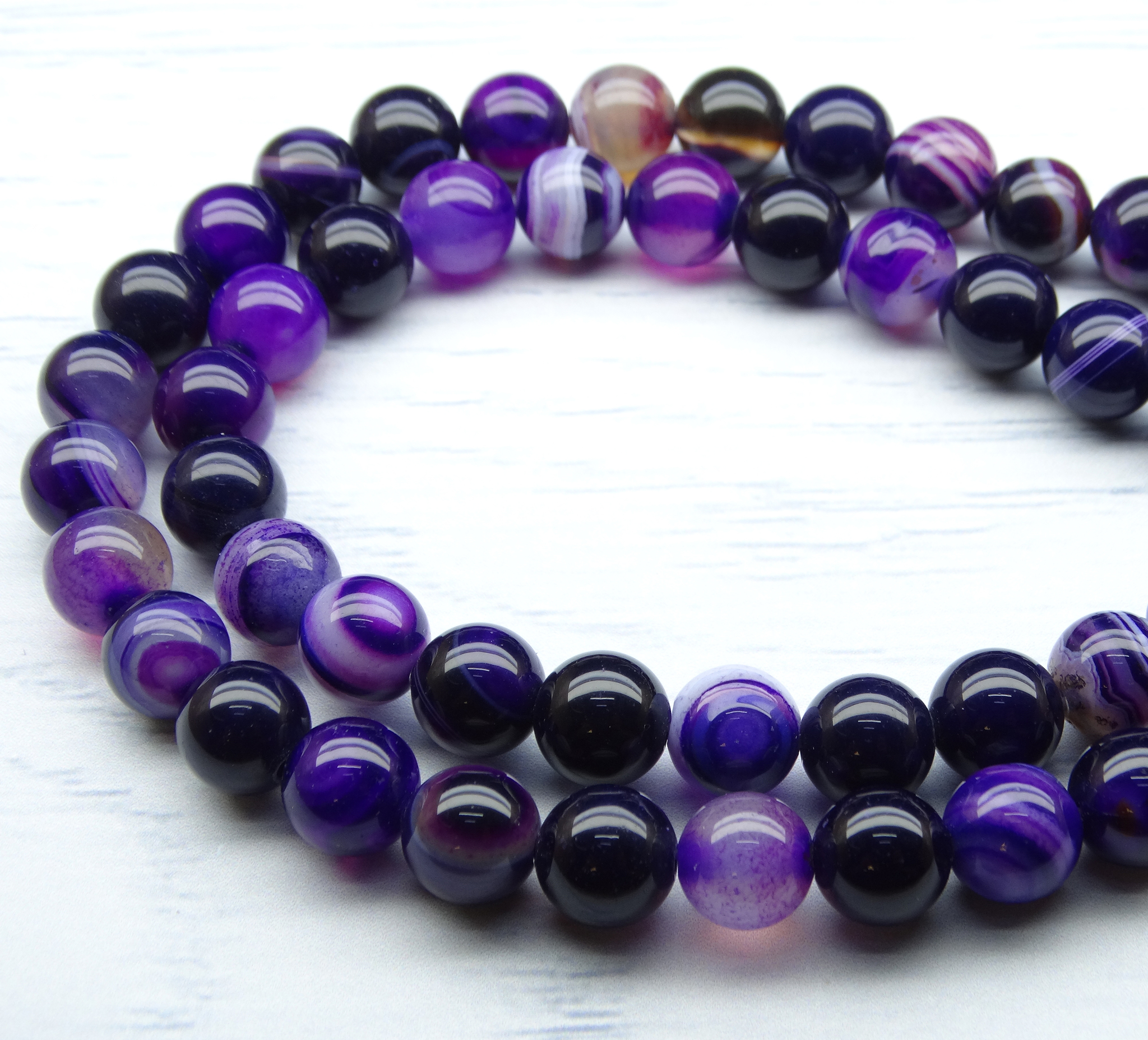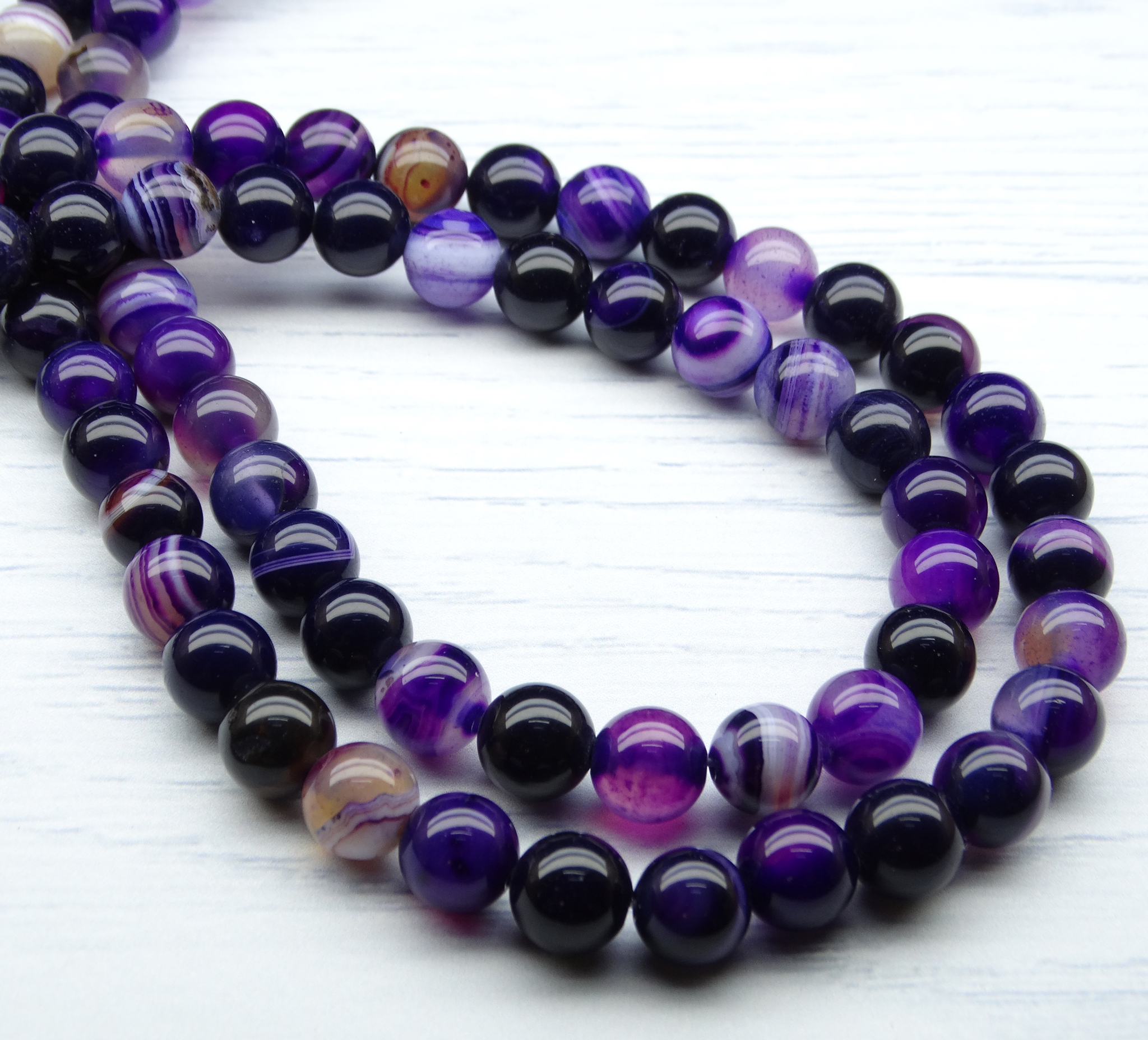 ПК063НН8 Бусины из природного камня Полосатый агат (фиолетовый), размер: 8 мм, 5 шт.