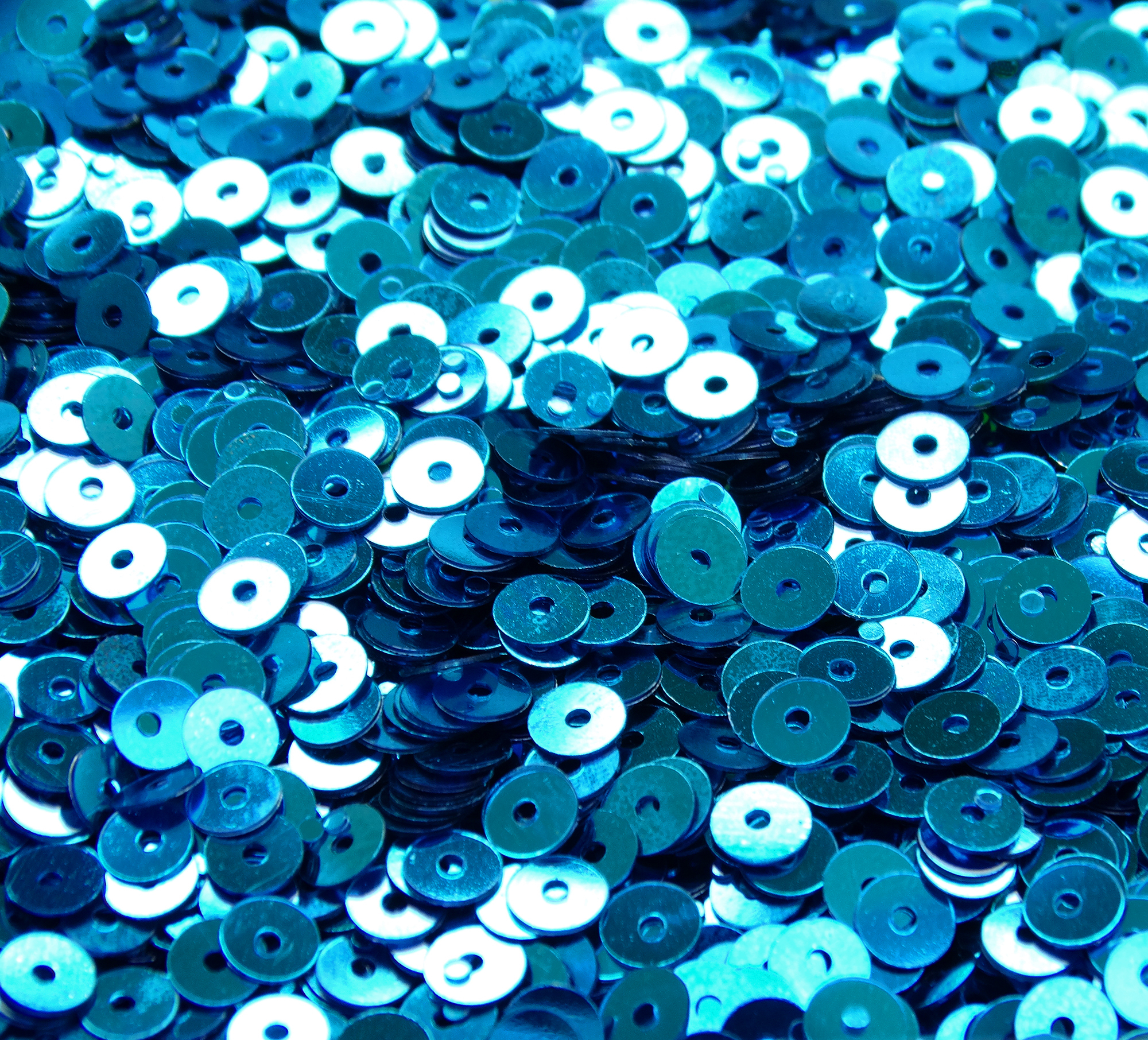 ПЛ015НН6 Пайетки круглые плоские, цвет: ярко-голубой металлик, 6 мм, 10 грамм