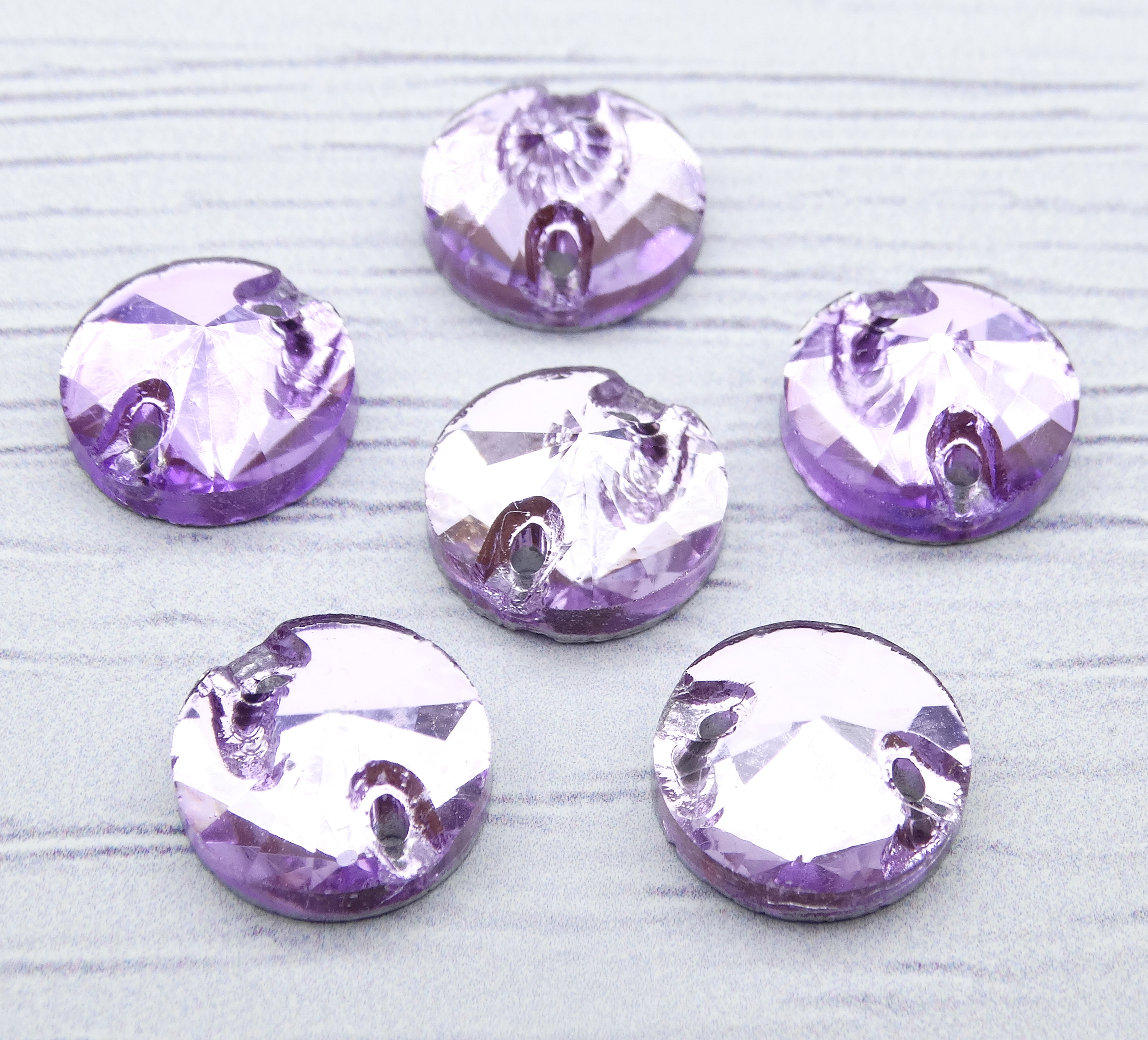 РИ015НН10 Хрустальные стразы круглые пришивные "риволи", цвет: сиреневый, размер: 10 мм, 10 шт.
