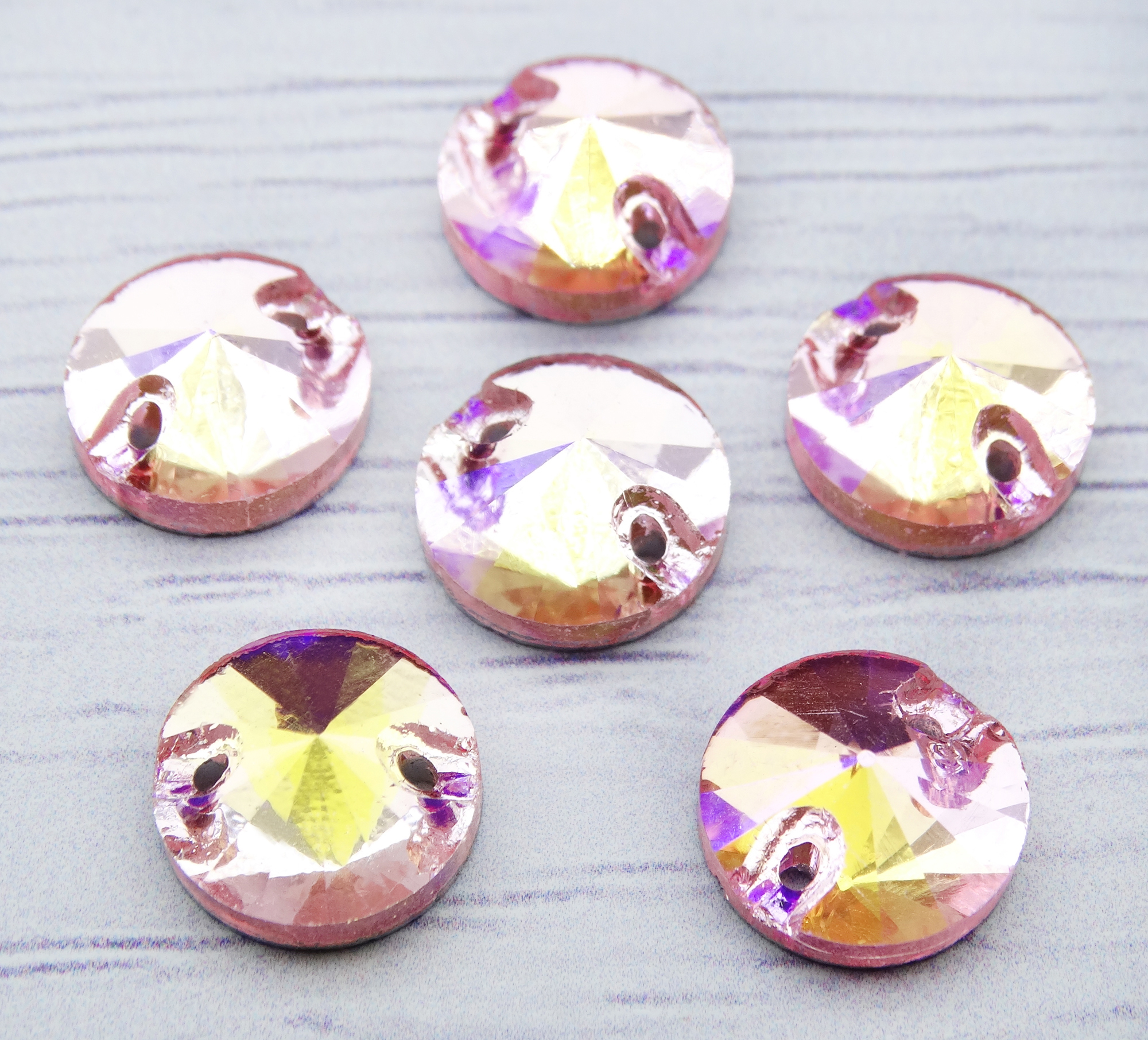 РИ016ДС10 Хрустальные стразы круглые пришивные "риволи", цвет: розовый AB, размер: 10 мм, 10 шт.
