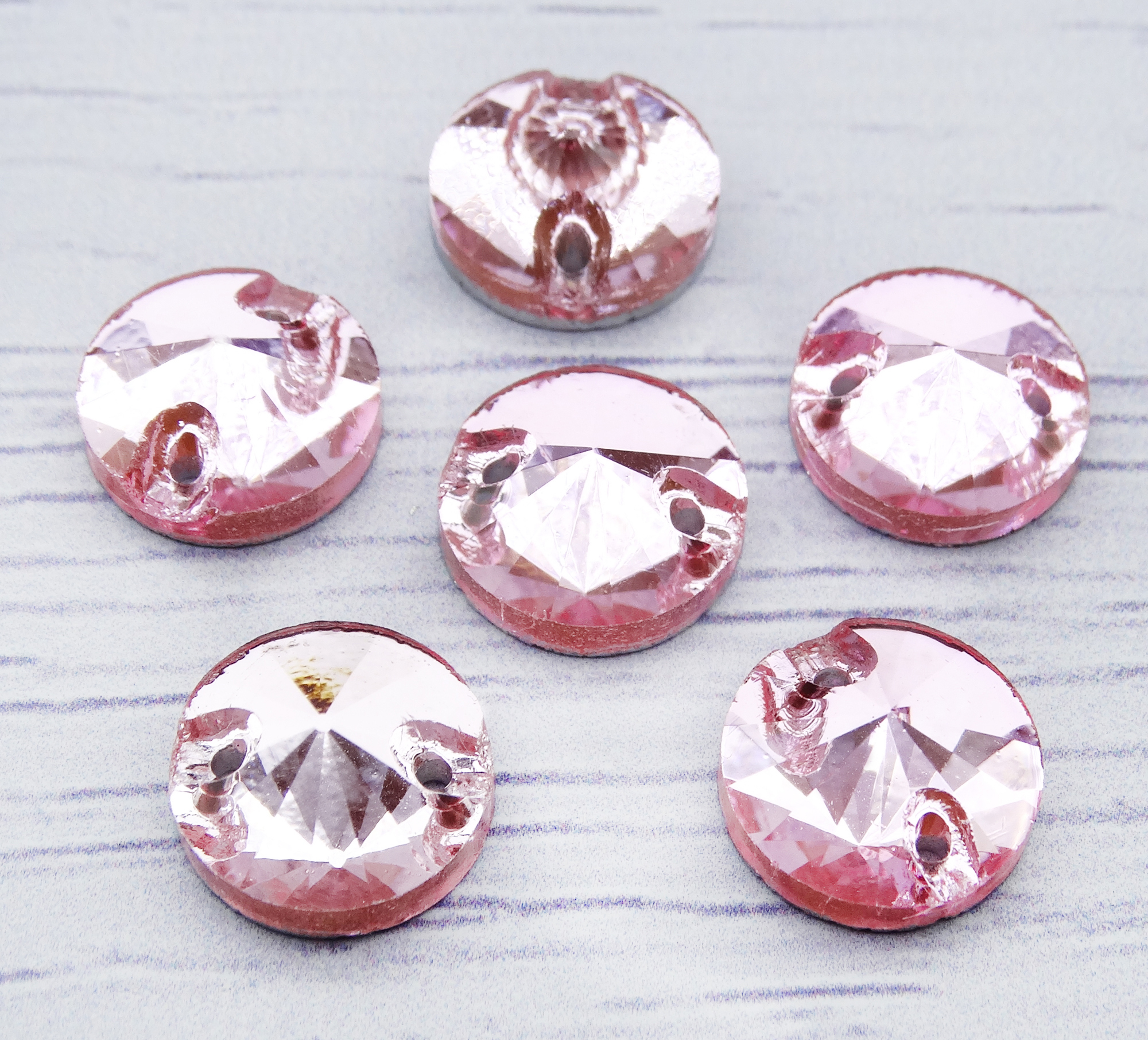 РИ016НН10 Хрустальные стразы круглые пришивные "риволи", цвет: розовый, размер: 10 мм, 10 шт.