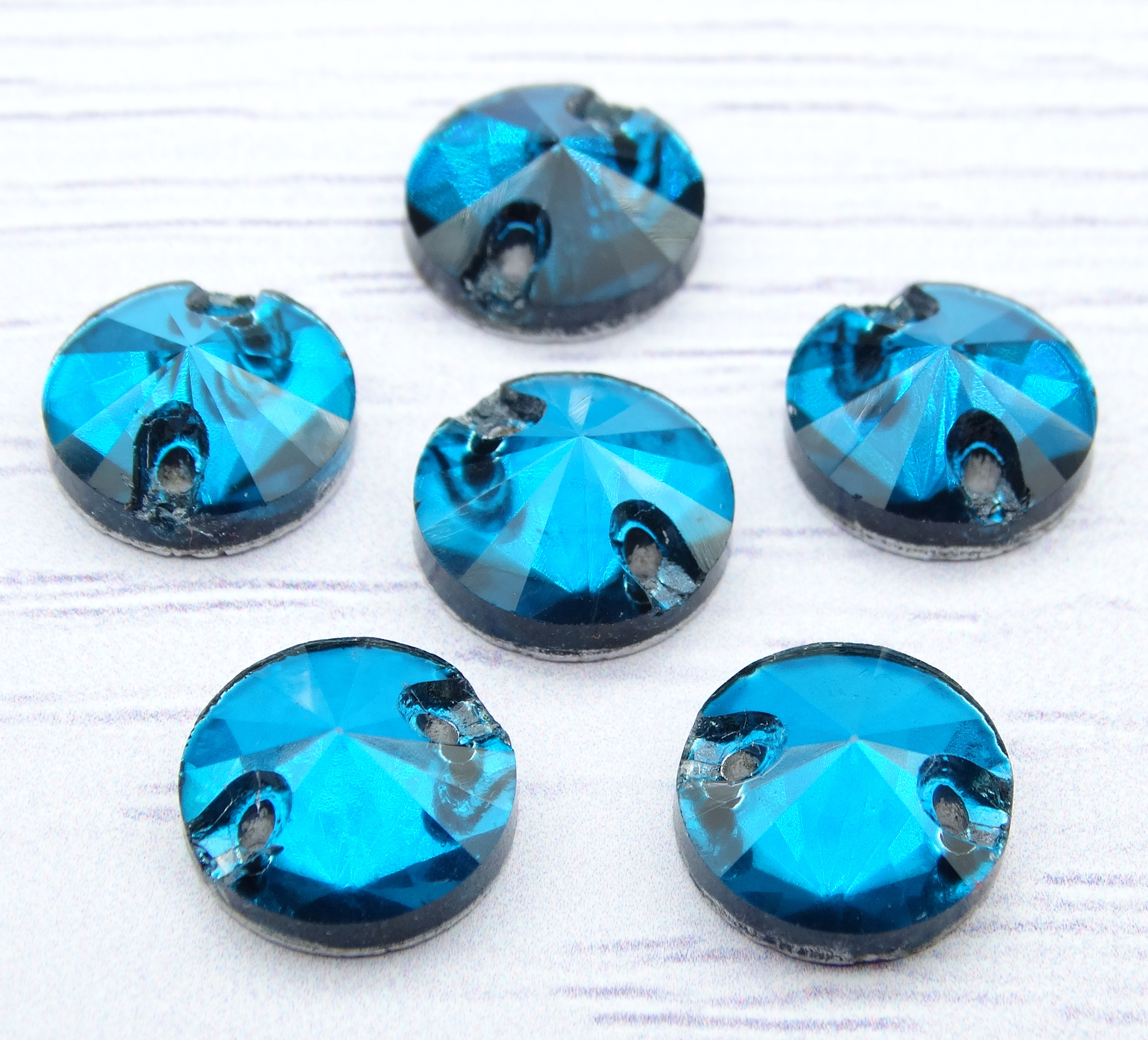 РИ018НН10 Хрустальные стразы круглые пришивные "риволи", цвет: лазурный, размер: 10 мм, 10 шт.