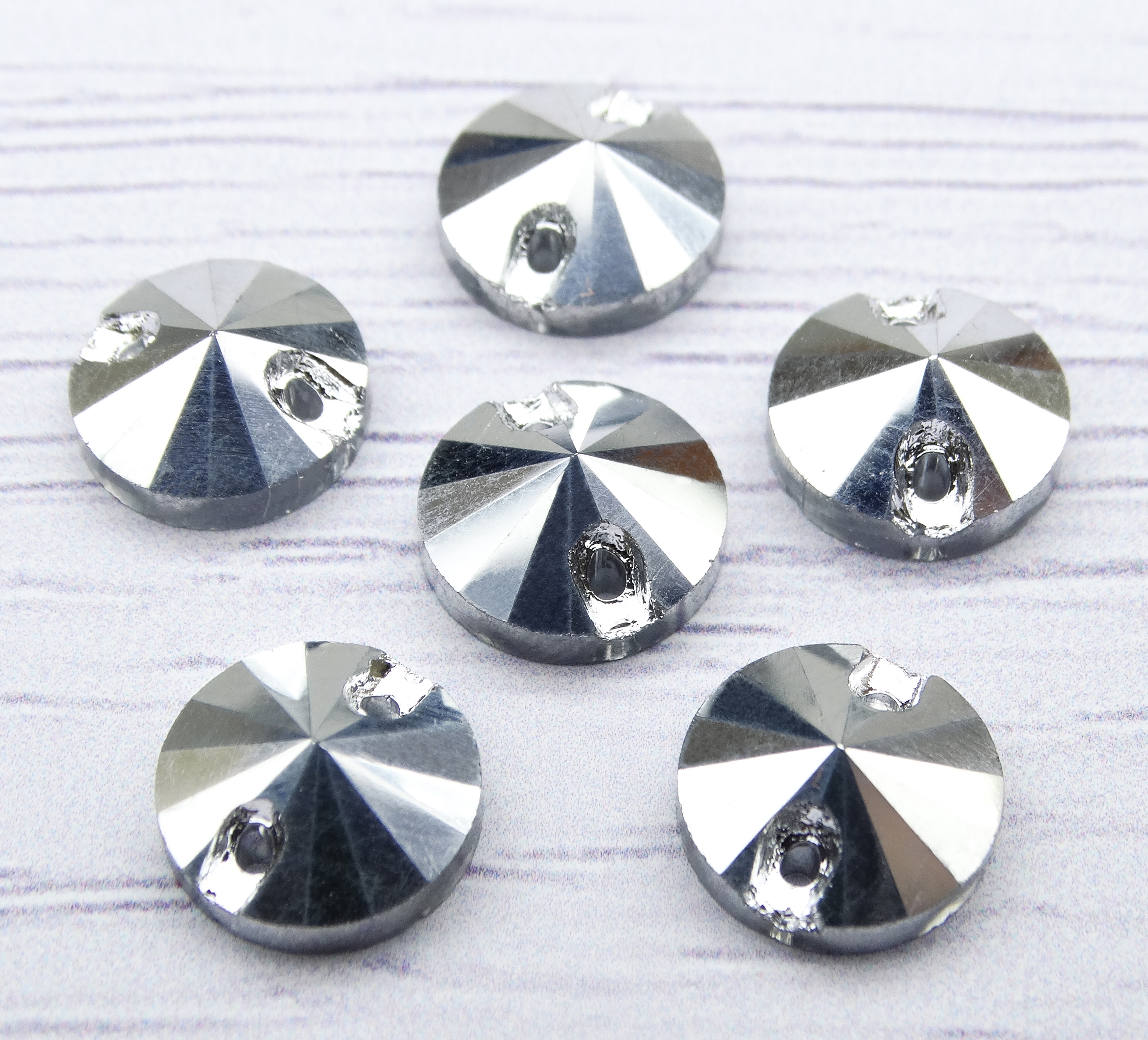РИ020НН10 Хрустальные стразы круглые пришивные "риволи", серебро металлик, размер: 10 мм, 10 шт.