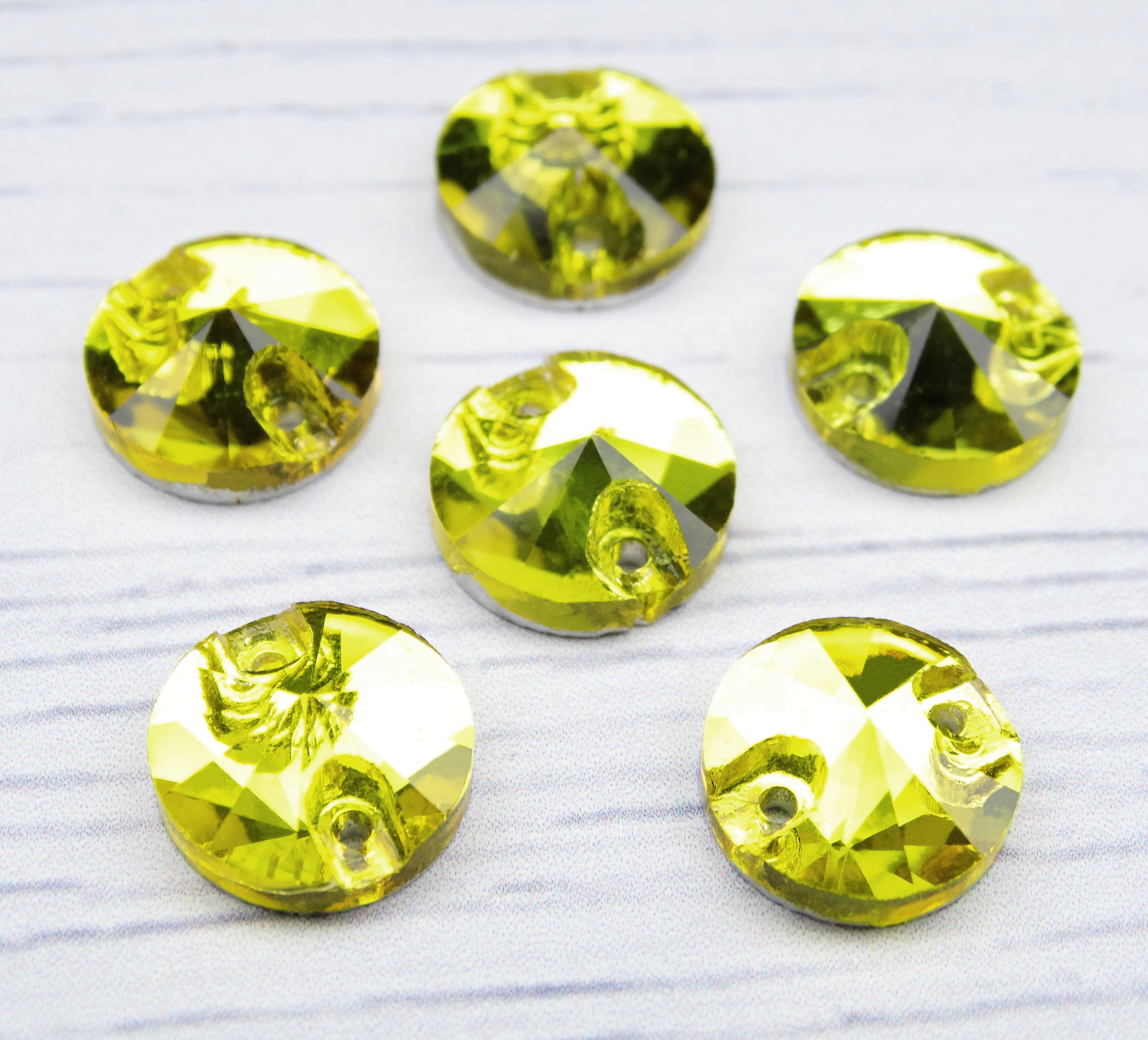 РИ022НН10 Хрустальные стразы круглые пришивные "риволи", цвет: цитрин, размер: 10 мм, 10 шт.