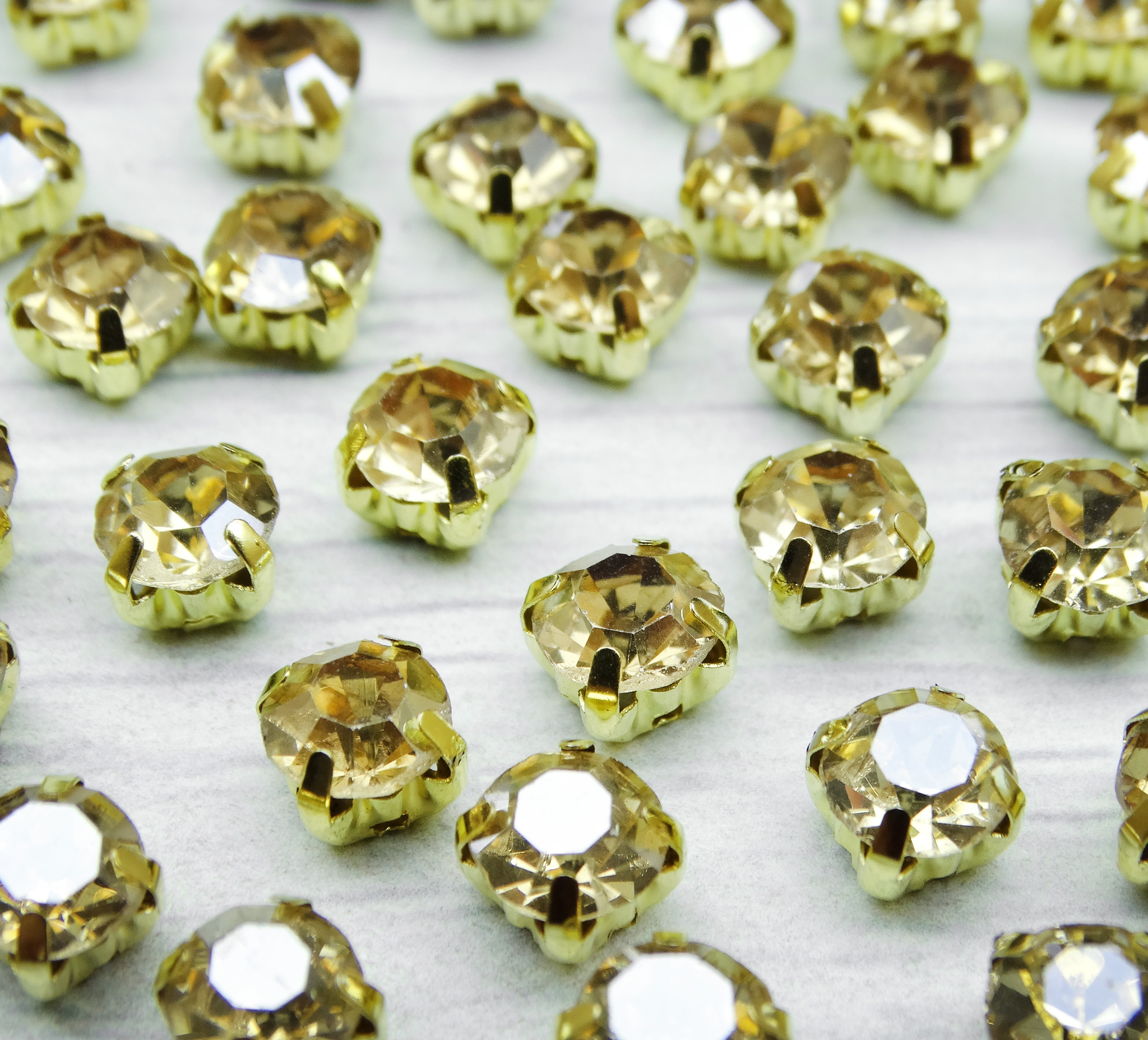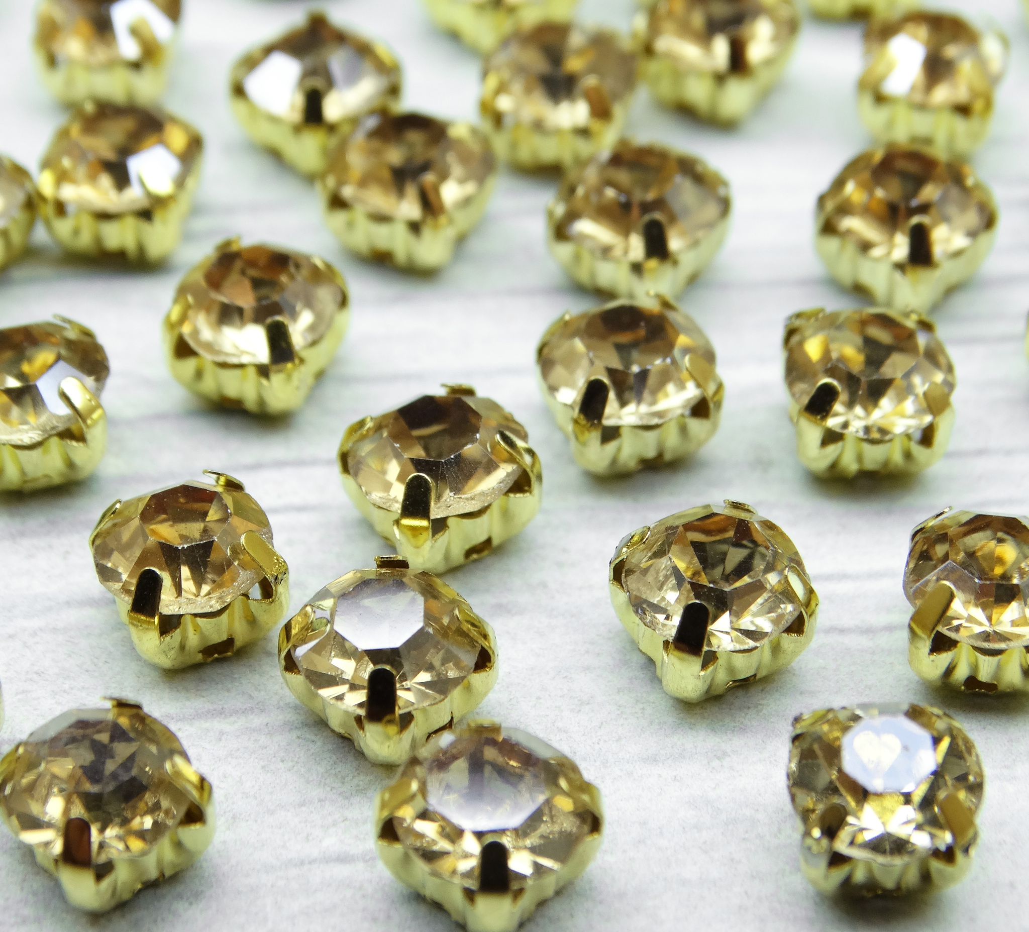 ЗЦ024НН66 Хрустальные стразы в цапах (шатоны), цвет: шампань (золото), 6х6 мм, 24-25 шт.